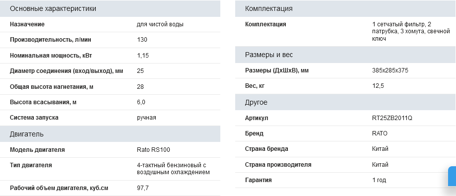 Мотопомпа RATO RT25ZB20 подходит для перекачки чистой воды без твердых частиц, взрывоопасных и легковоспламеняющихся примесей, без морской воды, кислотных и щелочных растворов, а также напитков любого происхождения.